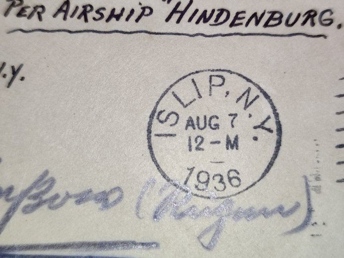 Schitterende luchtbrief via Zeppelin Hindenburg vertrok op 7 augustus 1936 uit Islip NY en arriveerde op de 12e in Frankfurt am Main met perfecte afdrukken en gefrankeerd tegen het tarief met luchtpostzegels voor 35c. Gesigneerd en gegarandeerd origineel.