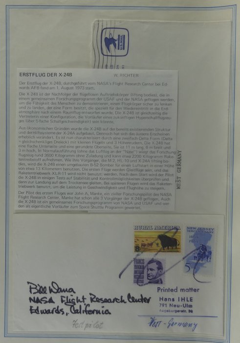 Twee mappen met veel brieven over de Space Shuttle van 1973 tot 1986. Losgemaakt met rapporten en informatie tot aan de ramp met de Challenger. gemengde kwaliteit. Het gehele kavel (op een paar zuivere tekstpagina's na) is gefotografeerd en maakt deel uit van de beschrijving.