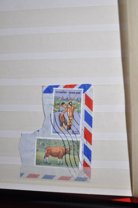 Wereld - Partij met verschillende landen in een stapel stockboeken.