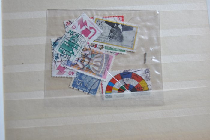 Wereld - Uitzoekpartij in een flinke stapel stockboeken.