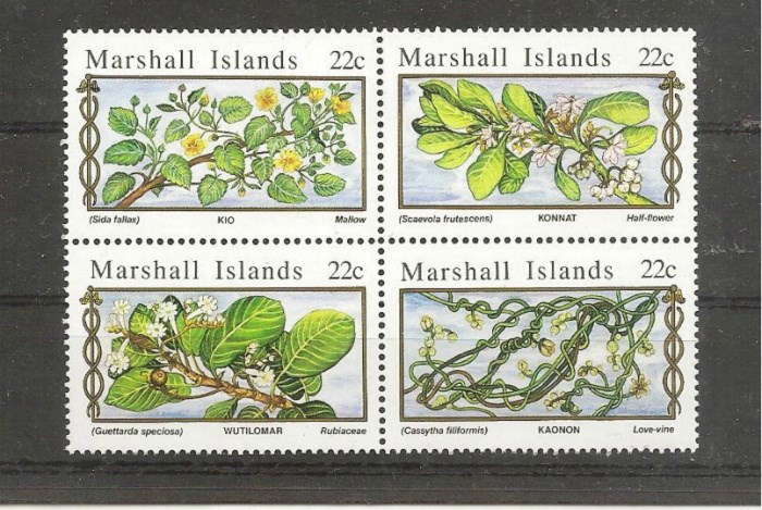 MNH blok van 4 postzegels uit 1985,medicinale planten, uit de Marshall Island.