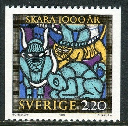 MNH postzegel uit 1988 glas in lood uit Zweden.
