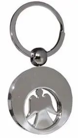 Handig hoor, deze sleutelhanger met een beschermengel die ook tevens als winkelwagenmuntje te gebruiken is!