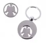 De mooie stevige sleutelhanger van RVS heeft een diameter van circa 3,5 cm. De engel kun je eruit halen en dan kun je het muntje gebruiken voor een winkelwagentje. Je kunt het engeltje ook in je beurs stoppen, en een muntje van 50 eurocent in de sleutelhanger doen.