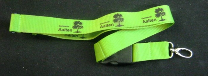 Het sleutelkoord is uitgevoerd in de kleur groen, een kleur die staat voor de groene gemeente Aalten.