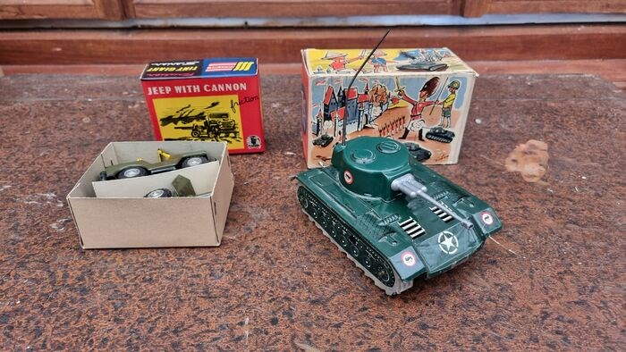 Arnold Germany Tank 780 en Jeep met kanon SSS made in Japan Tiny Giant Series.