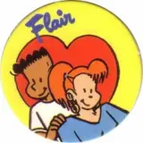 10 verschillende, nieuwe Wackers (pog's) van Flair, waarvan 4 met Claire van de Flair -stripfiguren en 6 andere (zie voorbeelden op foto's a.u.b.). Ingedeeld in series: 6 van série bleue (nrs. 1-2-3-4-5-6) en 4 van série jaune (nrs. 1-2-3-6).