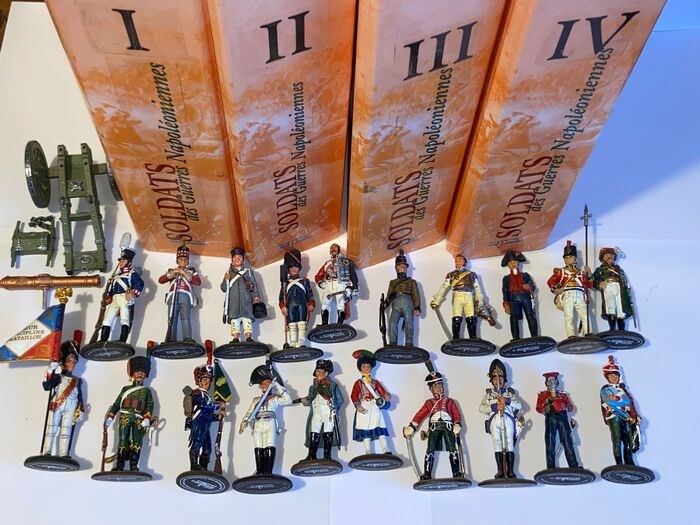 Kavel van 20 Del Prado oorlogssoldaten in lood - blik waaronder Napoleon… + 1 kanon + 4 ordners (I, II, III, IX)
