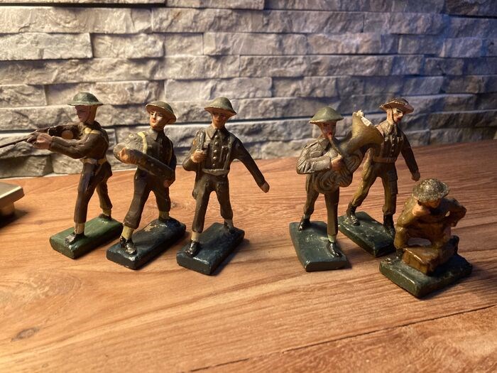 Aangeboden 6 mooie soldaten van het Belgische merk DURSO in goede staat, te weten een telefoniste, een soldaat van de band, een genie-soldaat, een staande schutter, een met een machinegeweer op de rug en een met een granaat. Bekijk de foto's goed om een goed beeld te krijgen van de staat en ook de waarde van deze stukken.