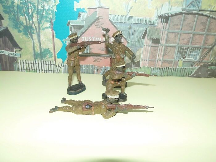 Vier Elastolin figuren van het Afrika korps in zeer goede staat.