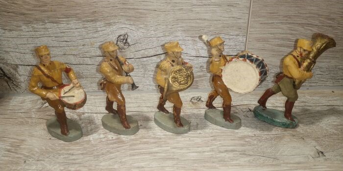 5 elastoline Wehrmacht-soldaten als muzikanten. Zie de foto's voor de staat.