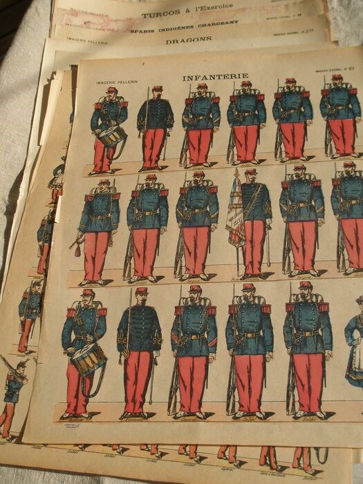 50 vellen speelgoedsoldaatjes 40 x 29,5 cm uit de jaren 1900/1920 met speelgoedsoldaatjes om uit te knippen