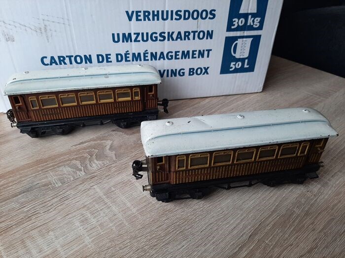 2 Blikken Märklin rijtuigen in redelijk goede, bespeelde staat, en voor zover ik heb kunnen beoordelen compleet.