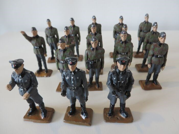 14 infanteristen in camouflage-tenue en 3 officieren grijs tenue