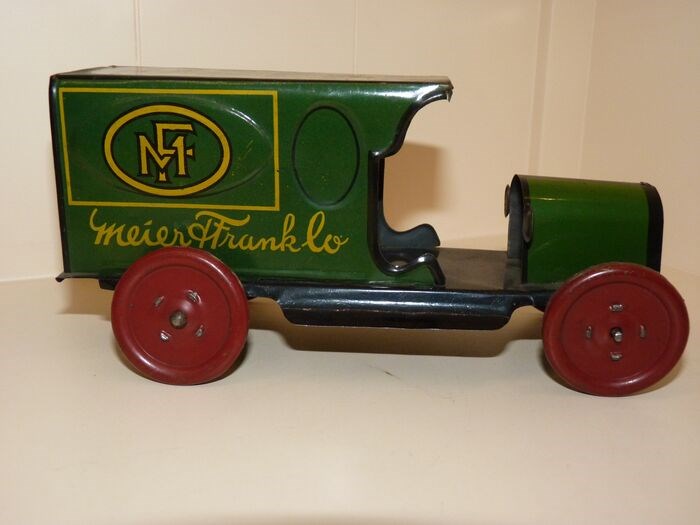 Deze zeldzame promotie Truck is geproduceerd in de jaren 20 in Duitsland voor het bekende warenhuis Meier & Frank in Portland (Orgeon) US het geheel verkeert in een uitzonderlijke staat . een geweldig item voor de verzamelaar .