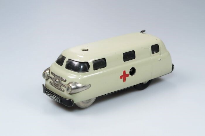 Schuco Varianto Patent nr. 3043 Sani Ziekenwagen Bus met uurwerk motor