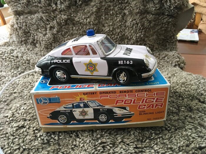 Een zeer mooie Porche 911 politieauto rijdt vooruit achteruit de besturing werkt ook het licht op het dak wordt geleverd met originele doos. De foto's maken deel uit van de beschrijving.