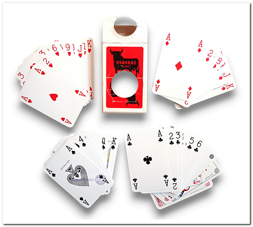 Met deze 55 speelkaarten in bridge formaat van Carta mundi weet je zeker dat je kaartavond leuk wordt (inclusief 3 jokers. Op de achterkant van de kaarten is het Osborne Sherry logo afgebeeld.
