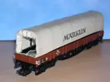 Marklin platte bakwagen met stoffe huif met opschrift Marklin
