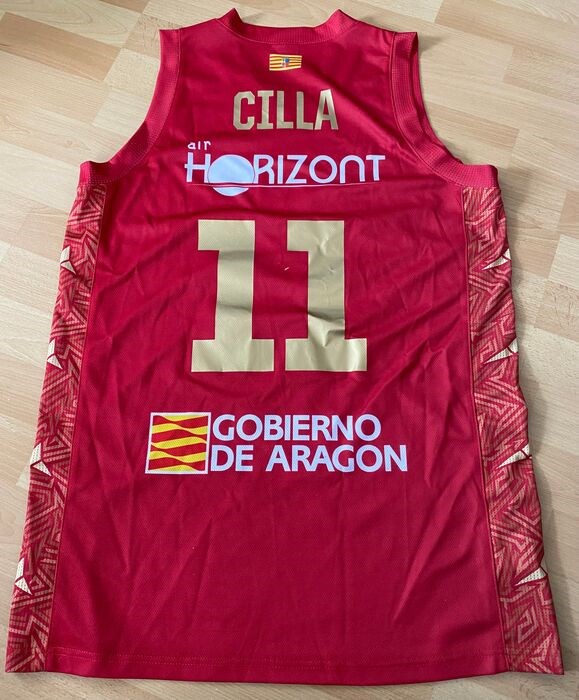 Basketbalshirt van de speler Jesus Cilla van Basket Zaragoza. Shirt met spelerscertificaat en handtekening.