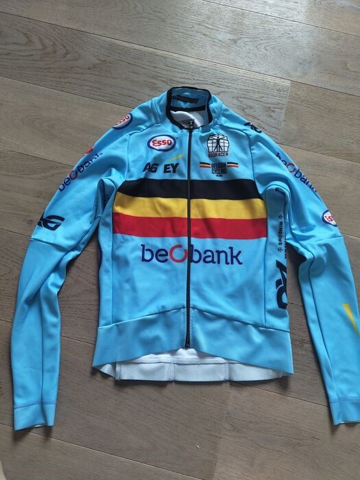 De originele podiumtrui waar Remco Evenepoel zijn Wereldkampioenschap medaille in het tijdrijden te Brugge mee afgehaald heeft.