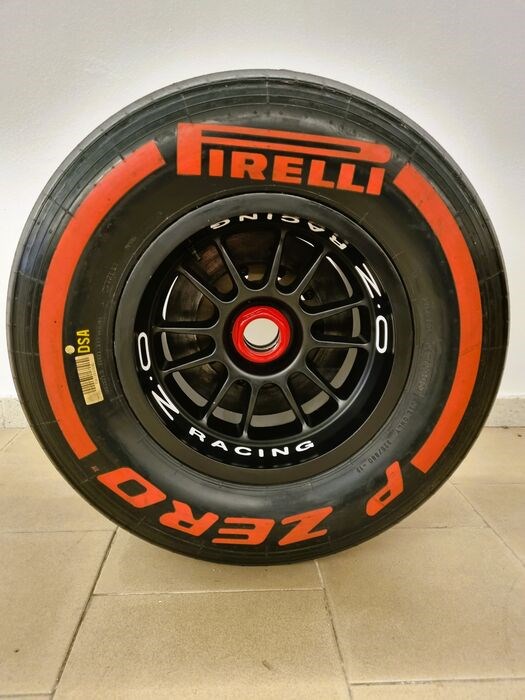Te koop: Supersoft rode Pirelli achterband compleet met OZ Racing matzwarte velg.