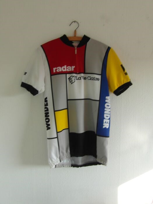 Origineel Vintage wielershirt van de beroemde Franse Toshiba Look La Vie Claire wielerploeg met o.a. Greg Lemond-Bernard Hinault -Andy Hampsten die verschillende keren de Tour de France wonnen in de jaren 80tig, opgericht in 1984 en opgeheven in 1991 met Bernard Tapie als ploegleider