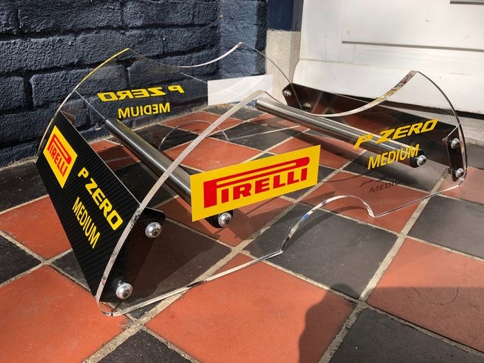 Deze display wordt door Pirelli gebruikt om de F1 wielen te showen.