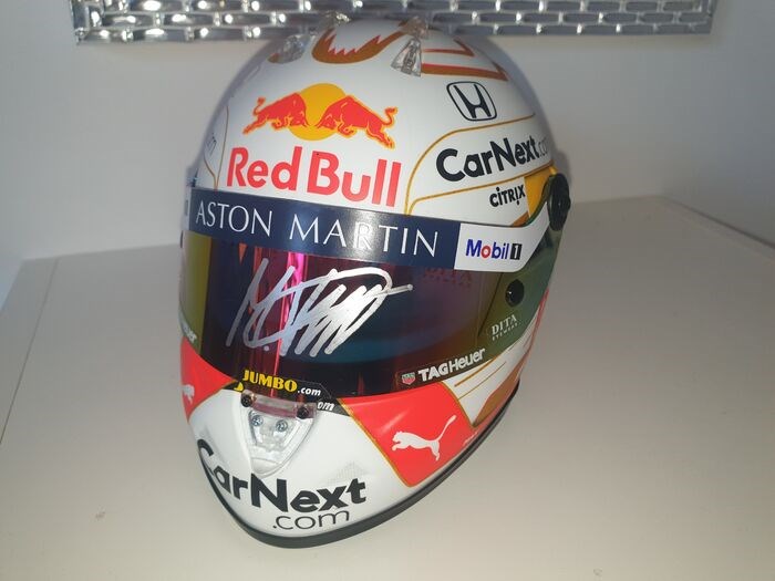 1/2 schaalhelm uit het jaar 2021 van de wereldkampioen Max Verstapen gesigneerd