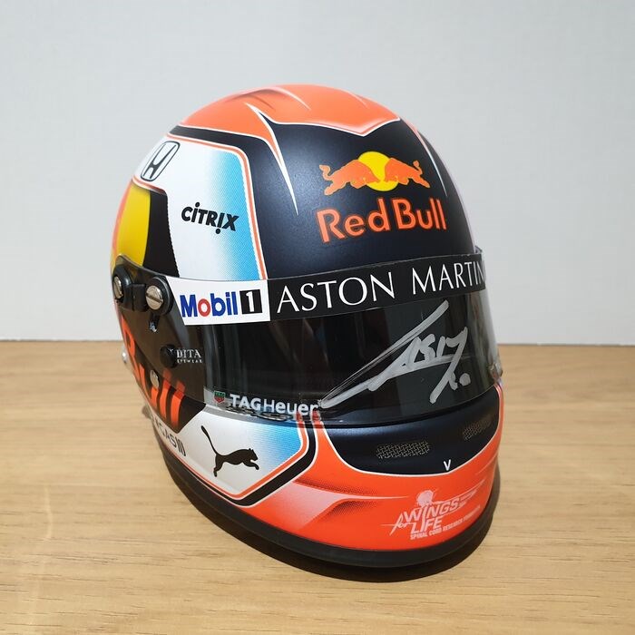 Helm in schaal 1:2, nieuw in originele en gesigneerde verpakking, een geweldige replica van de collectie van Pierre Gasly's Formule 1 helm, met zeer mooie details en kleuren!