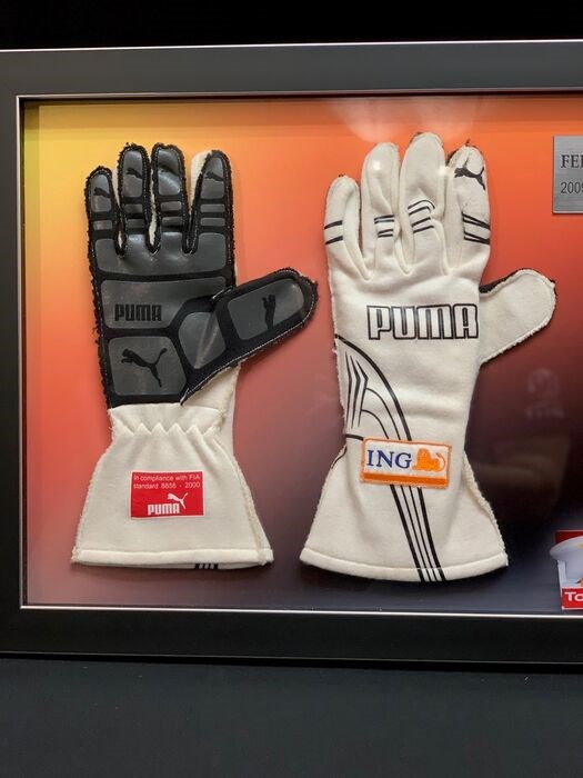 Hier bieden we een fantastisch paar Fernando Alonso 2006 Renault ING handschoenen aan. T. We bieden deze handschoenen aan met een 100% geld-terug-garantie op hun echtheid.