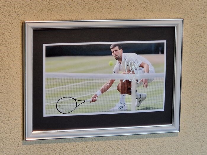 Dit kavel betreft een fantastische foto van 25x14,5 cm incl een nieuw in seal budget lijst 23x32 cm. Foto is met de hand gesigneerd door GOAT Novak Djokovic. De winnende bieder ontvangt ook een hologram genummerd Collectables Unlimited Certificate of Authenticity (COA)