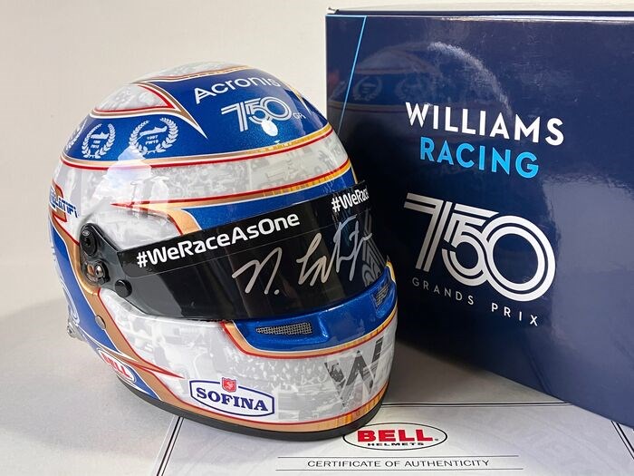 Voor de Grand Prix van Monaco van 2021 vierde Williams 750 Grand Prix's met speciale kleurstellingen op de auto's en speciale helmen voor de coureurs. Hier hebben we de Nicholas Latifi-versie, een genummerde, beperkte editie, met de hand ondertekend met certificaat.