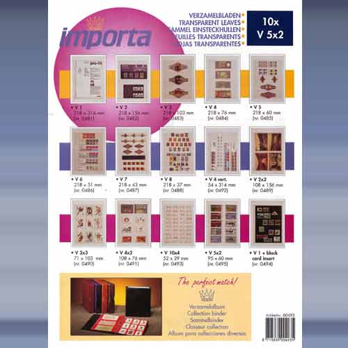 set van 10 transparante weekmakervrije V-bladen, geschikt voor 10 telefoonkaarten per blad.