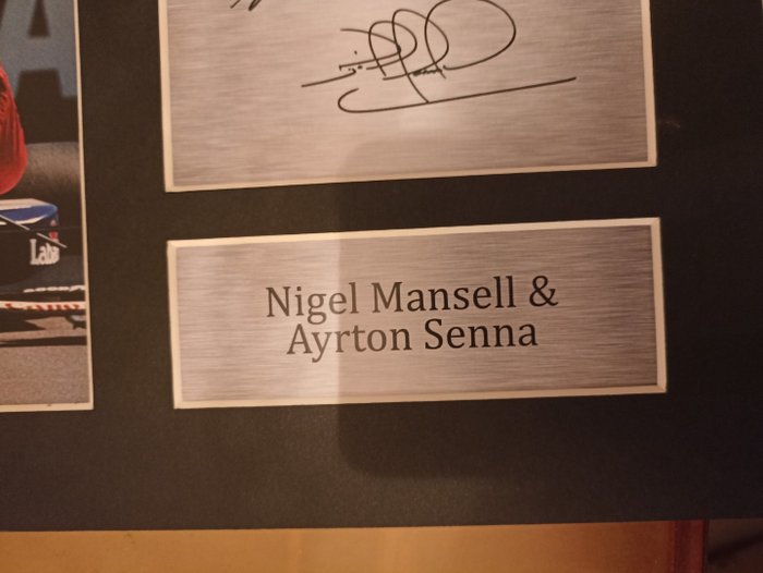 Dit A4 (297x210 mm) niet-ingelijste Nigel Mansell & Ayrton Senna-display is professioneel gemaakt in onze studio en is een ideaal cadeau-idee. Deze lasergeprinte kwaliteitsfotografie is gemonteerd op een zuurvrij matzwart displaybord met drie nauwkeurig uitgesneden vensters. Aan de linkerkant van het scherm bevindt zich de hoofdafbeelding. Aan de rechterkant van het scherm bevinden zich twee plaatgebieden met metaaleffect voor afdrukken van de naam en handtekening. Deze standaards worden ook geleverd met een stevige steunplaat waardoor ze zeer stevig zijn en kunnen worden weergegeven of opgehangen zoals ze zijn. Als u ze wilt inlijsten, passen ze in elk A4-frame.