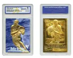 Elke kaart is individueel met de hand gemaakt met bladgoud met een driedimensionale goudstempel, die een dramatisch levensecht realistisch beeld van elke speler produceert.