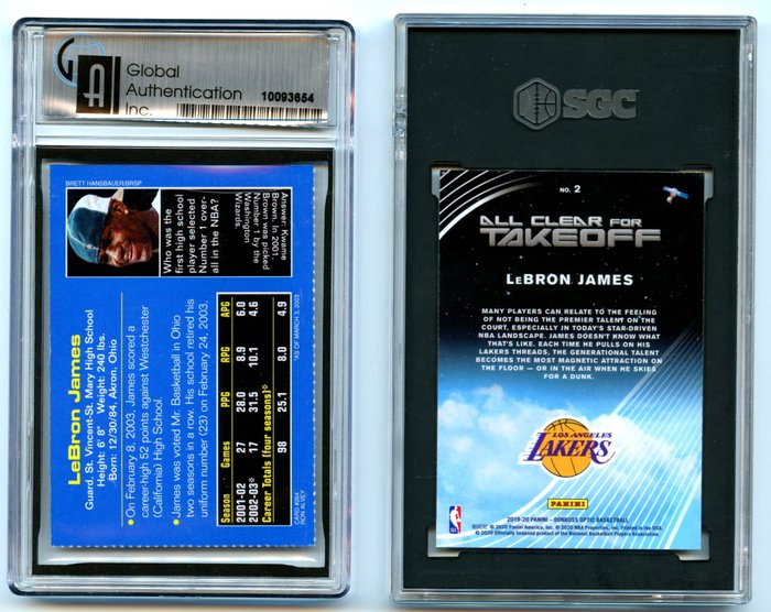 2003 and 2019 Sports Illustrated, Panini - LeBron James - Lot of 2 - Rookie SI for Kids GAI 8 & All Clear for Takeoff SGC 9.5
