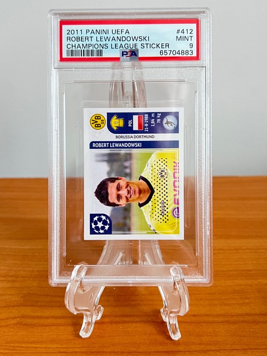 2011/12 Panini UCL Stickers - #412 - Robert Lewandowski - Borussia Dortmund - UCL Rookie Sticker - PSA 9