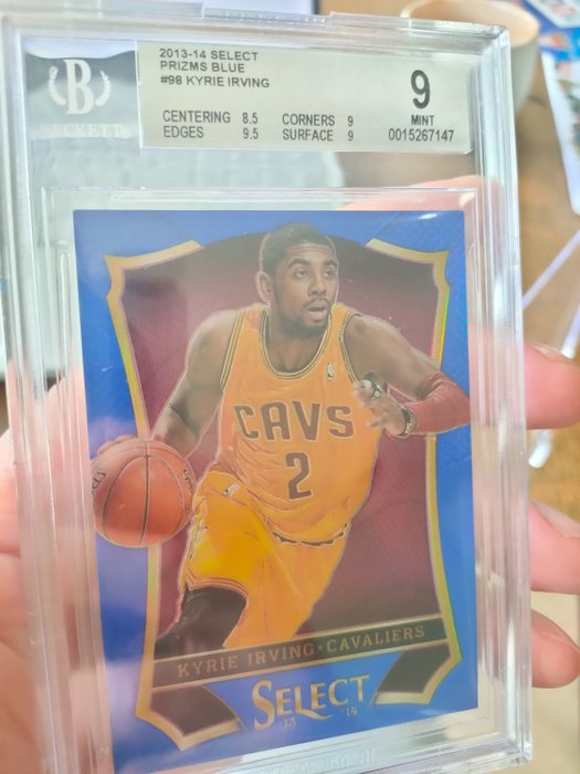 2013-14 Select Prizms Blue #98 Kyrie Irving /49. Een zeldzame gelimiteerde kaart van het 2e jaar van Kyrie Irving, ster van de Dalles Mavericks.