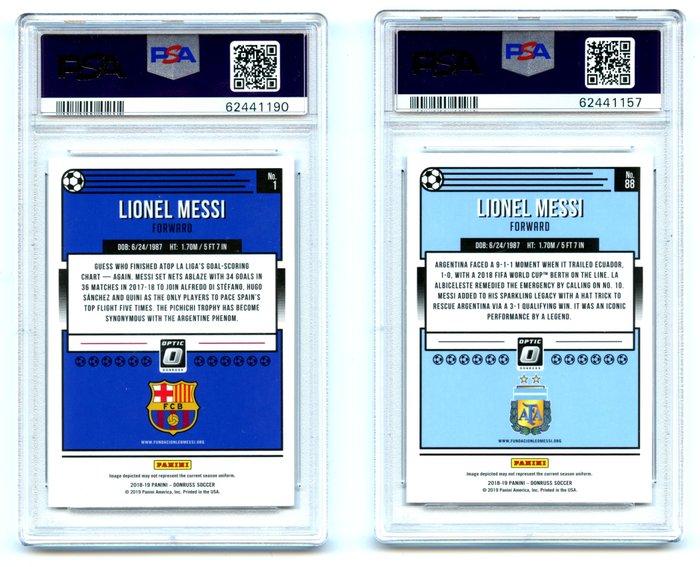 2018 Panini Donruss Optic Lionel Messi - Lot of 2 cards - FC Barcelona & Argentina - GOAT - PSA 9