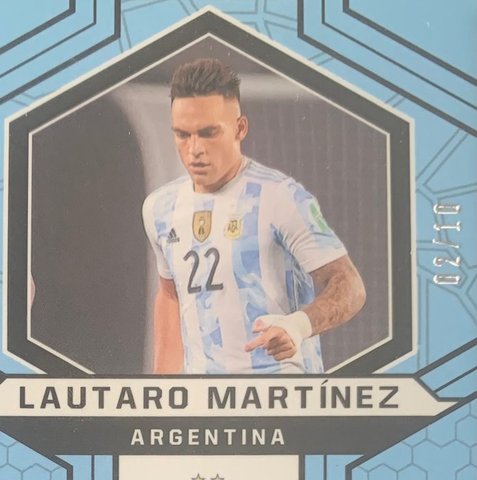 Schitterende SSP-kaart van wereldbekerwinnaar Lautaro Martinez uit de Panini Obsidian-set 2021-22.
