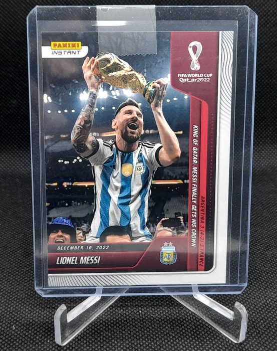 U biedt op de kaart van het jaar 2022!!! Kaart in beperkte oplage Panini Instant Messi wereldkampioenskaart, met slechts 22.081 exemplaren in de hele wereld afgedrukt
