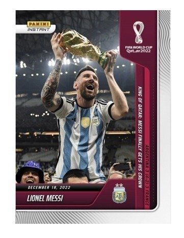 Het gaat over de ongelooflijke kaart van Lionel Messi die zijn eerste World Champion Cup opheft en die pas enkele dagen in Panini, Verenigde Staten, werd gepubliceerd.