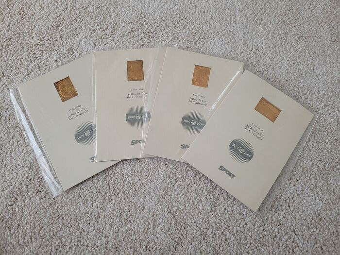 Ze behoren tot de herdenkingscollectie van het honderdjarig bestaan van FC Barcelona in 1899-1999. De postzegels zijn verguld met 24 karaats goud.