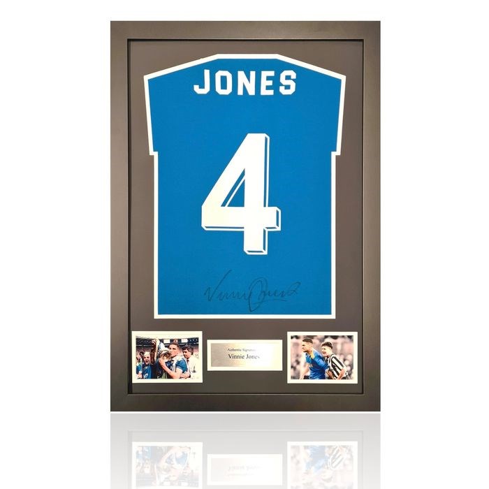 Dit is een aanbieding voor een authentiek handgesigneerd en prachtig ingelijst t-shirt van de voetballegende Vinnie Jones. Dit t-shirt is gesigneerd met een permanente marker en professioneel ingelijst in een prachtig slank en modern design. Dit item wordt ook geleverd met een echtheidscertificaat van AFTAL-dealer #208, dat een levenslange garantie biedt met een factuur.