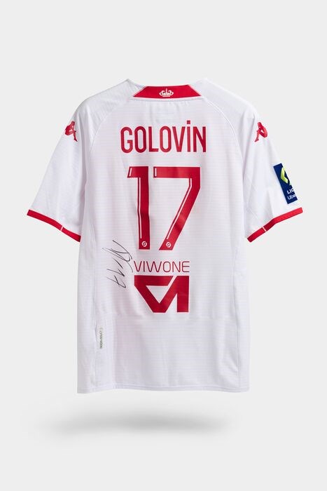 Shirt gedragen door Aleksandr Golovin tijdens de wedstrijd tegen PSG in het Stade Louis-II, tellend voor de 23e dag van de Ligue 1 op 11 februari 2023, waarin AS Monaco met 3-1 won.