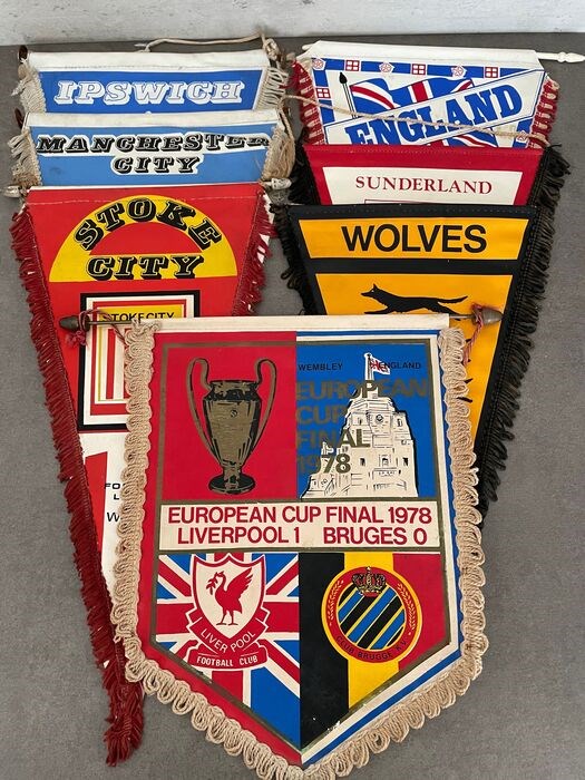 Uit privécollectie Premier League-wimpels stel ik 7 originele wimpels voor van de jaren 70 / 80 van Premier League-teams