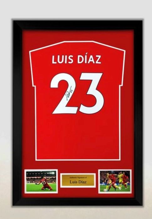 Welkom bij deze aanbieding voor een authentiek handgesigneerd ingelijst shirt van de Liverpool vleugelspeler Luis Diaz met een certificaat van echtheid