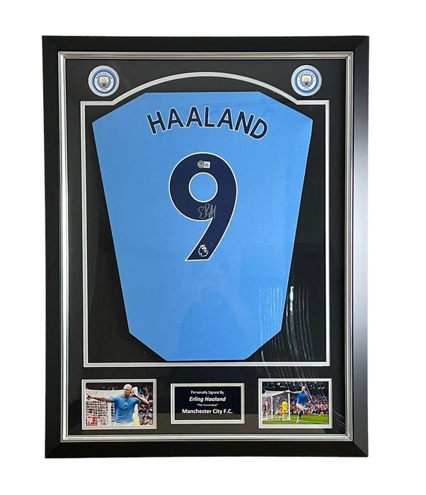 Erling Haaland Gesigneerd Officieel Manchester City thuisshirt 2022-23, gesigneerd door Erling Haaland. Beckett-authenticatie.