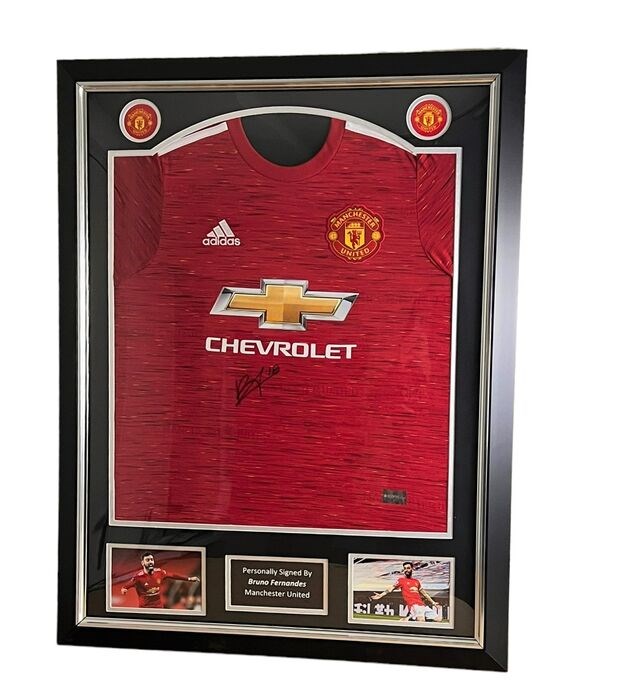 Bruno Fernandes gesigneerd Manchester United-shirt. Luxe lijst